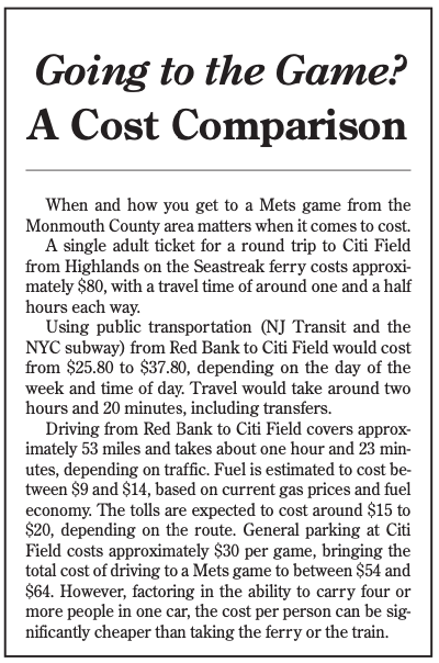 “If you look at a map, it’s a no-brainer,” Barker said. “You avoid the length of the trip in driving, which can be well over two hours.” Additionally, he said the return can get more challenging as “everybody’s leaving the stadium at the same time, (it) can be a real nightmare, so much that people just don’t really attend the Mets games with any frequency from around here, because it’s such a pain.”