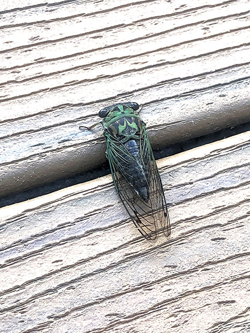 Ticks and SLFs don’t make noises, but cicadas sure do. Known for their loud buzzing and emergence in droves, cicadas are harmless but their noise can be deafening. While Brood XIV will emerge here in 2025, we still have the usual annual cicadas all summer long. Consider it a song of the summertime. The Eastern cicada killer wasp is a potent natural predator; this