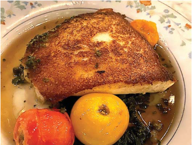 An equally generous portion of Grilled Branzino ($36) was plated with succotash, bacon lardons, Madras curry butter and a citrus-based sauce. Those accompaniments paired well with the mild flavor of the fish.