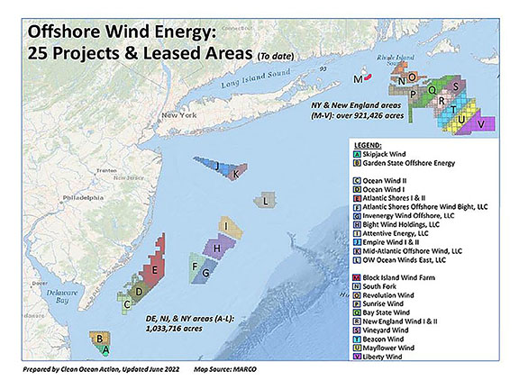 These bids are in addition to one awarded Feb. 17, 2022, by the state of New York to the Empire Wind Project, an effort spearheaded by British Petroleum and Equinor. The project features an 80,000-acre marine parcel located approximately 18 miles from the Gateway National Recreation Area at Sandy Hook.