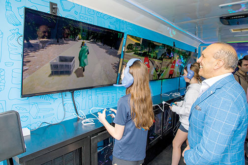 interactive, and unforgettable,” said Commissioner Director Thomas A. Arnone. “Inside this mobile unit are six gaming stations, allowing multiple students to participate at the same time. Each station features custom-designed games that teach what can and cannot be recycled, why recycling matters and how small everyday actions can make a big difference in protecting our planet.”