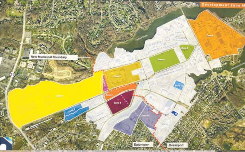 In the master Reuse Plan for Fort Monmouth’s future, formulated after the U.S. Army closed the base in 2011, 1,500 housing units, with 20% affordable, were mandated throughout the fort. Various types of housing – luxury townhomes nearing completion at the Suneagles Golf Course in Eatontown, historic renovated Officers Row homes now called East Gate in Oceanport, the Patriot’s Square mixed-use development across from the Tinton Falls Municipal Complex – are part of the mix. The fort’s 1,126 acres cover portions of Eatontown, Oceanport and Tinton Falls. As the Eatontown Housing Parcel was originally bifurcated by municipal boundaries, Eatontown and Oceanport adopted ordinances in 2023 to realign the municipal boundary, placing the property wholly within Eatontown’s borders.