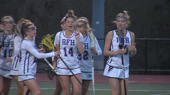 There have been plenty of stories about siblings playing together in high school sports, but it’s rare to see them on opposite sides of the field. One thing was certain April 11 at Count Basie Field – a Boyle was going to come out a winner. Older sister Mackenzie Boyle, a senior on the Red Bank Catholic girls lacrosse team squared off against younger sis Chase Boyle, a sophomore standout for top-ranked Rumson-Fair Haven. Mac Boyle led RBC with four goals while Chase scored three times for the Bulldogs, but it was the younger sister who took home bragging rights as her third goal proved to be the game winner in a thrilling 11-10 RFH win over the Caseys. With the victory, Rumson’s remarkable win streak against Shore Conference foes reached 111 games.