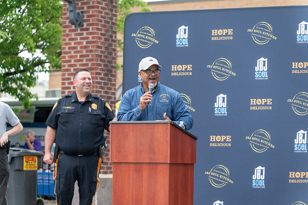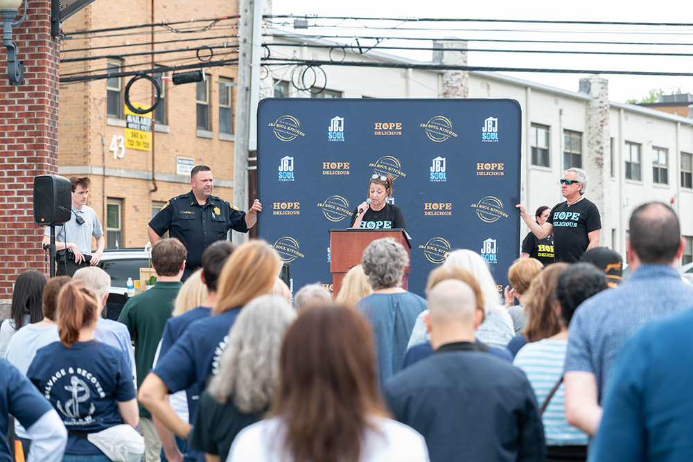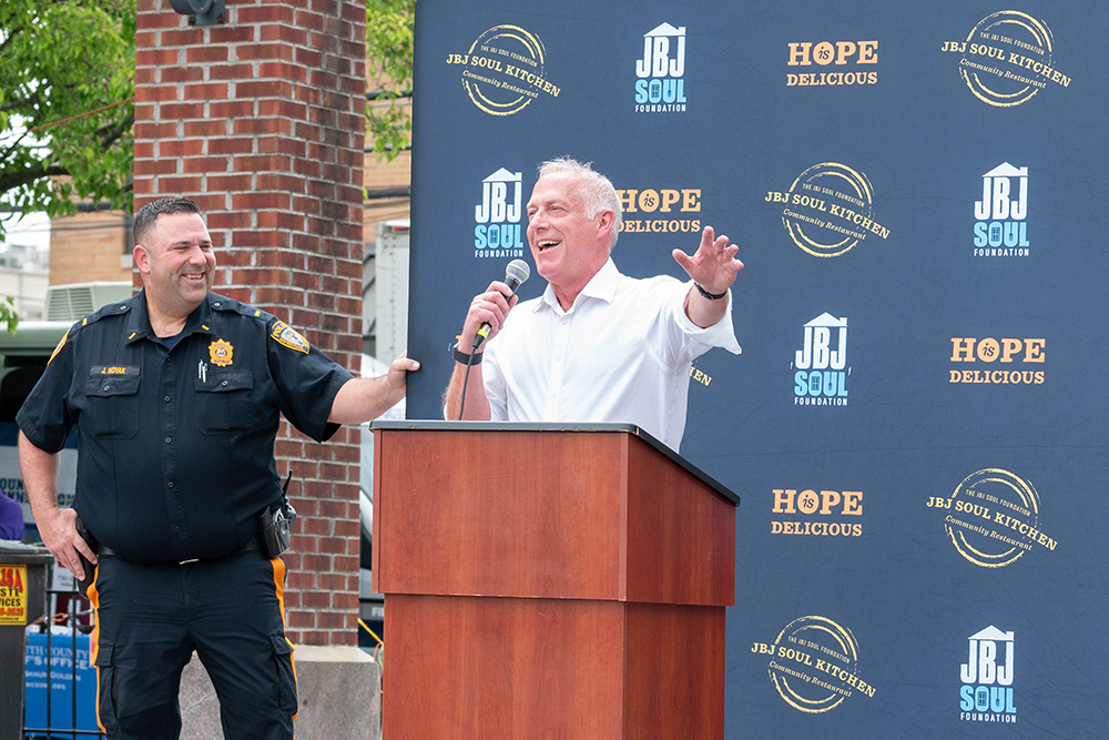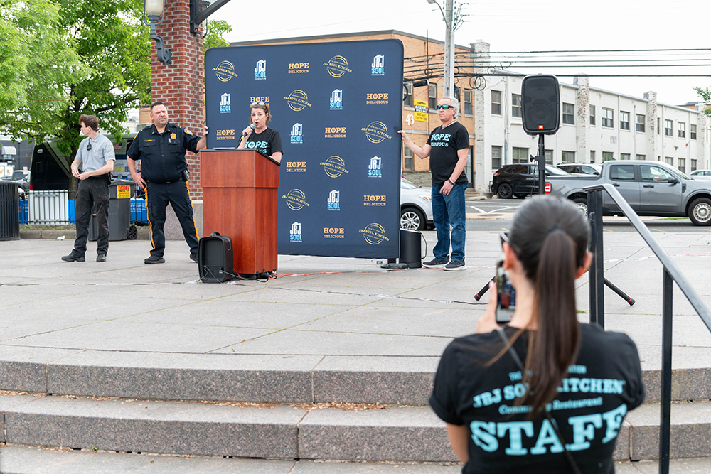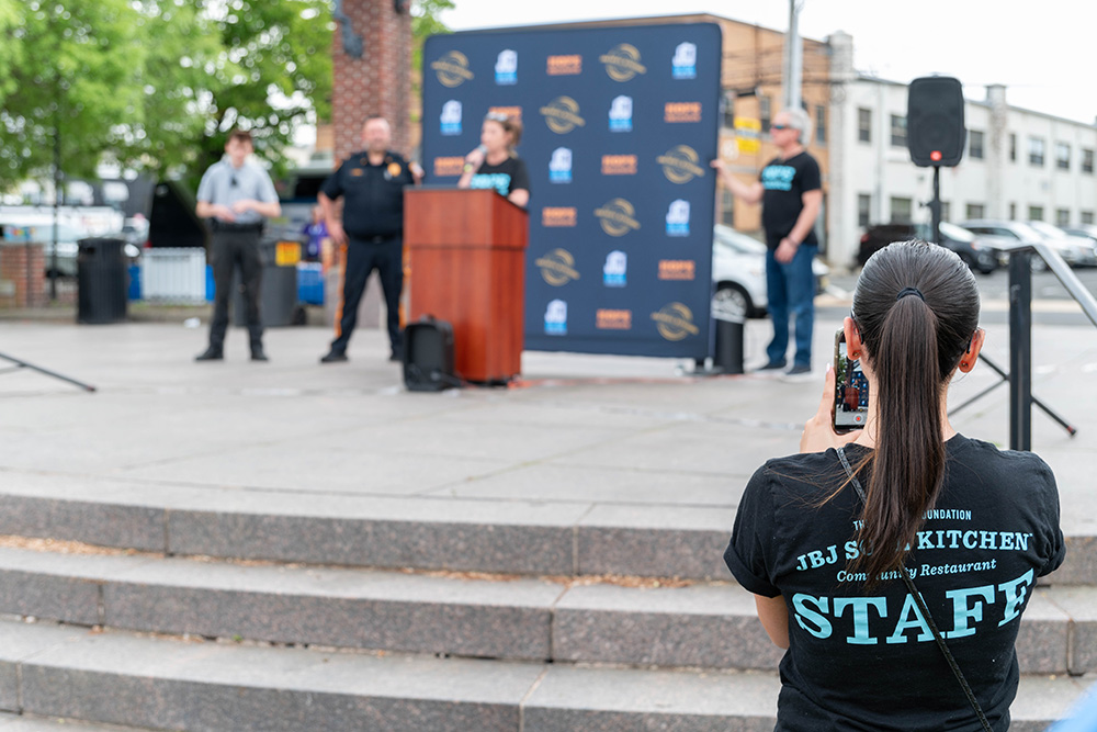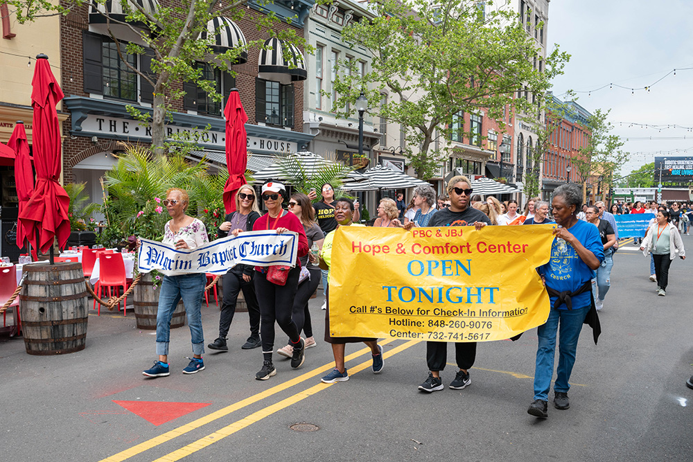 Dorothea Bongiovi, co-founder of JBJ Soul Kitchen, Rev. Terrence K. Porter of Pilgrim Baptist Church and many others addressed the crowd, thanking them for their service to the community and stressing the continued efforts needed. The walk left the park on West Front Street, turned right onto Broad Street and then right onto Monmouth Street before ending at JBJ Soul Kitchen, where refreshments were offered.