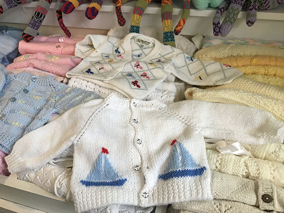 The shop now has over 40 volunteers. Inventory items have expanded. It is particularly renowned for its baby department, Boaman said. Popular children’s items include hand-knitted sweaters, crocheted dolls, embroidered blankets and hats, all at a reasonable price point, she said. Hand-knit baby sweaters range from $45 to $70.