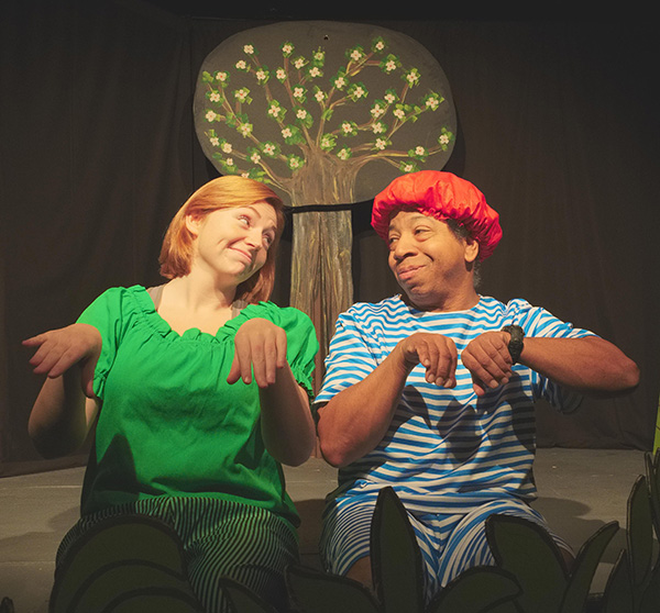Dorothy Blomquist of Westfield in the role of Frog and Marcus Scott from Fair Haven who plays Toad in a scene from “A Year with Frog and Toad” at Center Playhouse in Freehold.