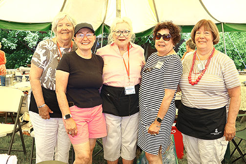 08/01/24, ST. GEORGE’S-BY-THE-RIVER’S 76TH ANNIVERSARY CANTERBURY FAIR, Kathy Welch, Kendall Murphy, Lisa Gilmour, Mary Embrey, Wendy Murphy, Beth Sherrard