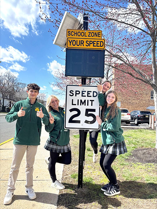 Last April, members of the RBC program met with Red Bank Deputy Mayor Kate Triggiano, then-Chief of Police Darren McConnell, and other borough officials to put their plan of a safer Red Bank into action. The main goal of the campaign was to address three problems that both drivers and pedestrians face: parking lot safety, rules of crosswalks, and the Move Over law. After listening to the students’ presentation, the town agreed to put up speed monitoring signs at both entrances to Peters Place, the street that runs next to RBC and the kindergarten through eighth-grade St. James School. These signs show drivers their current speed and alert them if they are over the limit.