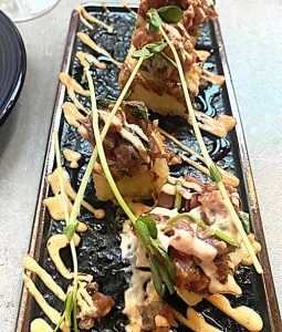 Tuna tartar with the soft tuna on crunchy cubes of rice made a nice contrast. Bob Sacks