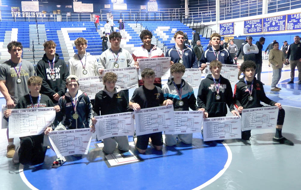 LAKEWOOD – Six wrestlers from The Two River Times area claimed Shore Conference Tournament championships Saturday, Jan. 24, at Lakewood High School, highlighted by repeat winners and three first-time champions.
