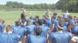Jeff Rainess addressed the Holmdel football team during 2019 summer training camp. Starting in July, teams will be allowed to meet in groups of 10 according to state guidelines