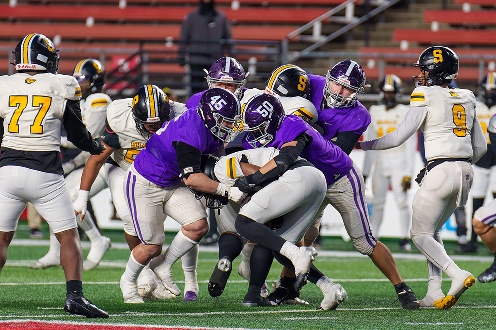 After a scoreless third quarter, the next critical fourth-down conversion came in the fourth quarter as O’Toole connected with Carson Memmott for 22 yards. That set the stage for Murray’s third touchdown of the game and a 10-point lead, a score that made all the difference as Shabazz’s Talib McLean scored in the closing seconds with a 7-yard touchdown catch off a deflection. The onside kick attempt did not go 10 yards and RFH kneeled out the win.