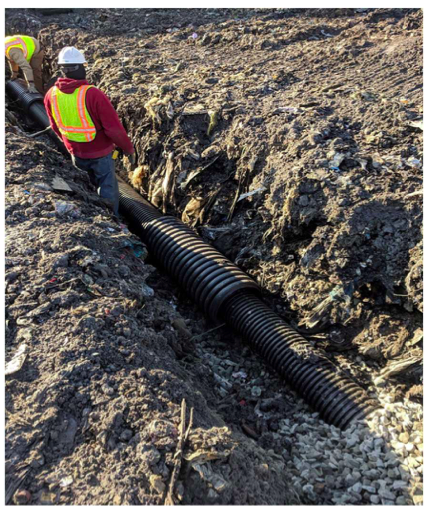The facility immediately deployed more units of NeutrOlene, a chemical odor suppressant. The Reclamation Center has two gas-to-energy facilities to collect methane, reducing landfill emissions while creating reusable energy. The plan to install additional horizontal gas-collecting devices at select elevations is almost 80% complete. Officials have also increased the vacuum on the gas collection systems to help minimize odors and replenished some of the eroded soil cover. There are also plans to install a 15 to 20- acre rain tarp to promote stormwater runoff and provide a seal to capture more landfill gas at the surface.